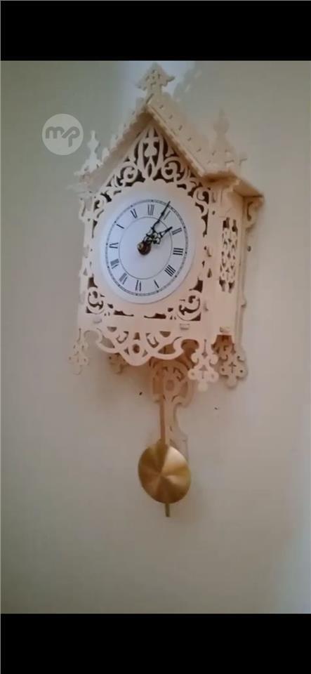 Hand made fretwork Clock with pendulum using birch plywood. Price 45euro. Contact number +356 9994 2920