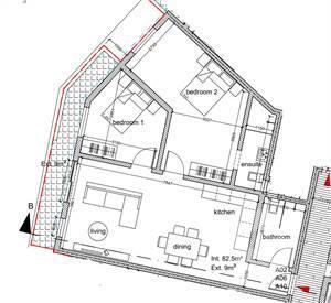 Upon entering one finds a kitchen/living/dining, bathroom, two bedrooms (master ensuite), balcony.