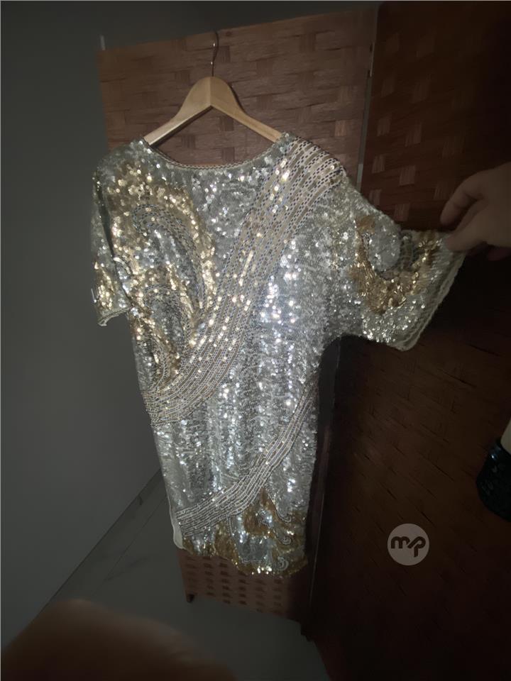 Silver evening dress with hand sewn details Size