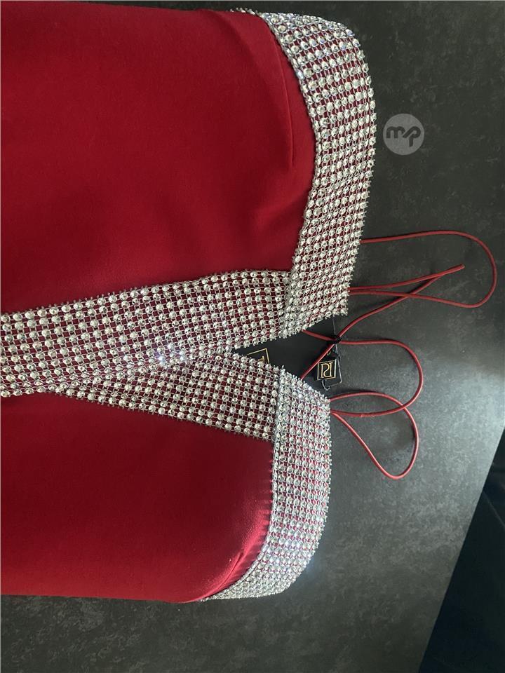 New Red evening mini dress with silver sequins