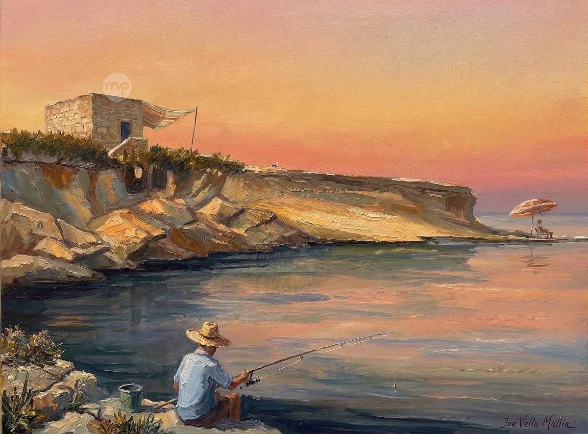 FISHING AT SAN BLASS GOZO --- ORIGINAL HAND PAINTING OIL ON CANVAS 70X50