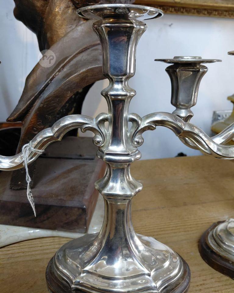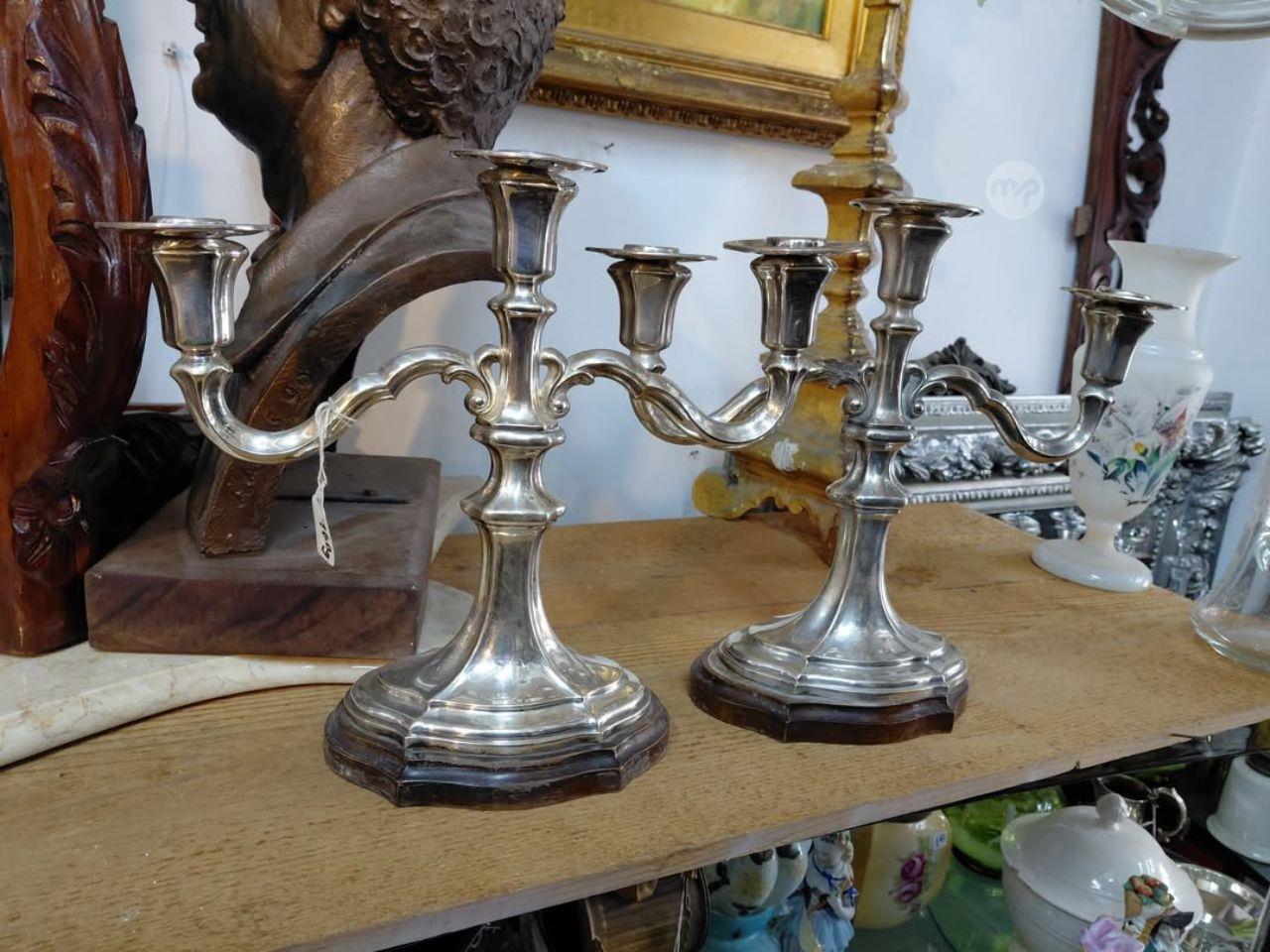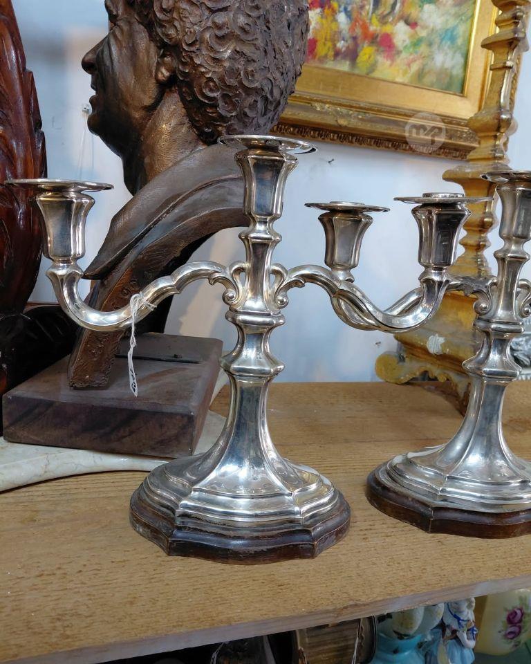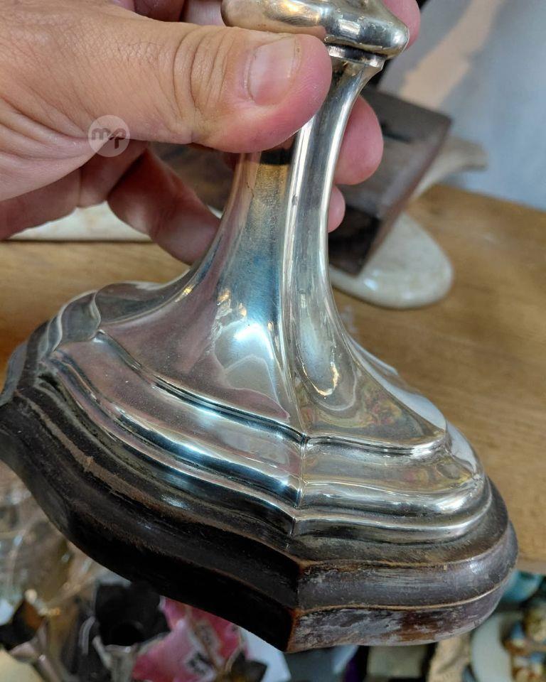 Pair silver Candlesticks On wooden base Nice and Elegant work...