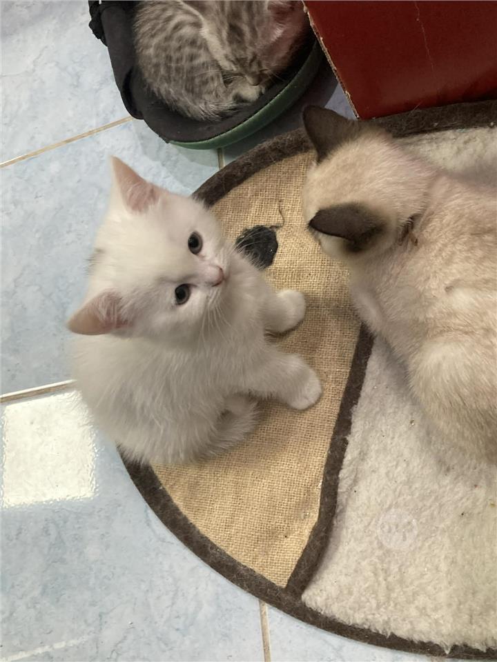 Half persians kitten , mother persian father siamese. 2 females black and 2 males white