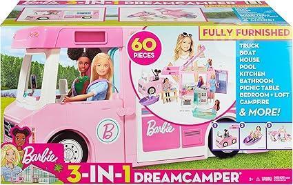 Barbie House and Camper with other items/toys related to Barbie.