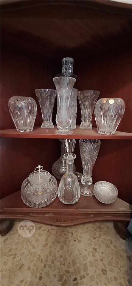 Beautiful vintage wooden display cabinet sold together with a collection of crystal glassware.