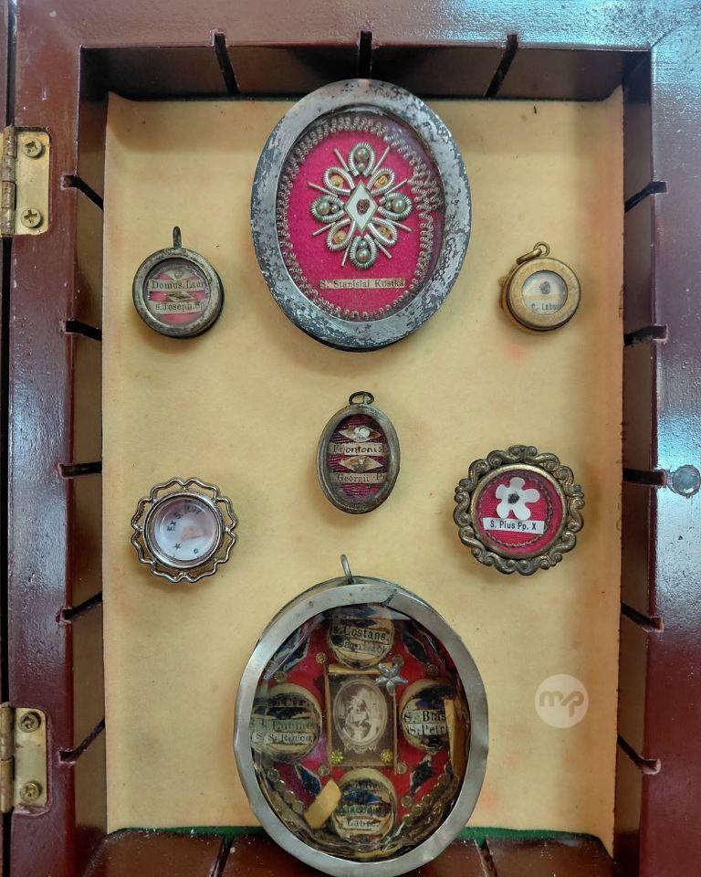 Lot of 7 Antiques Religious Relics, all Mounted in small frame 99456526