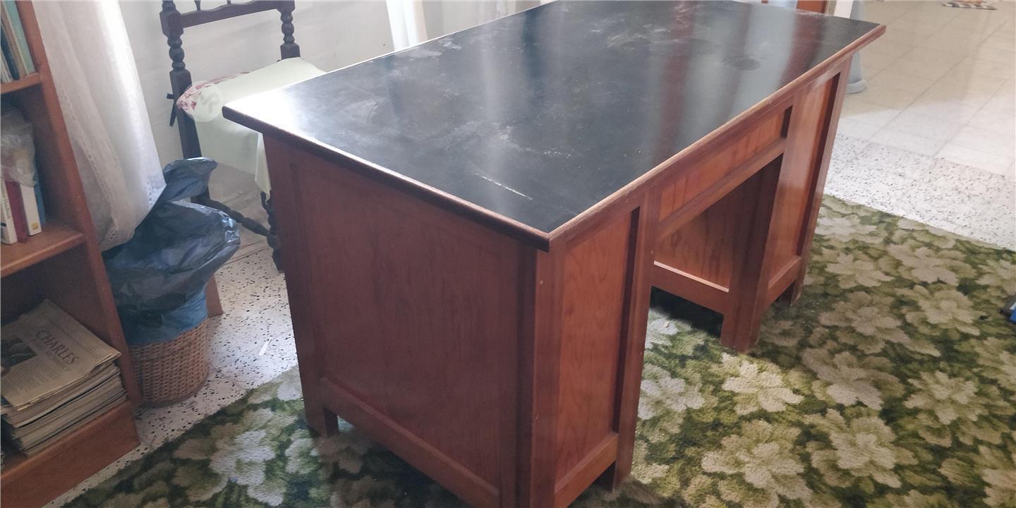 Desk with one door and four drawers .
