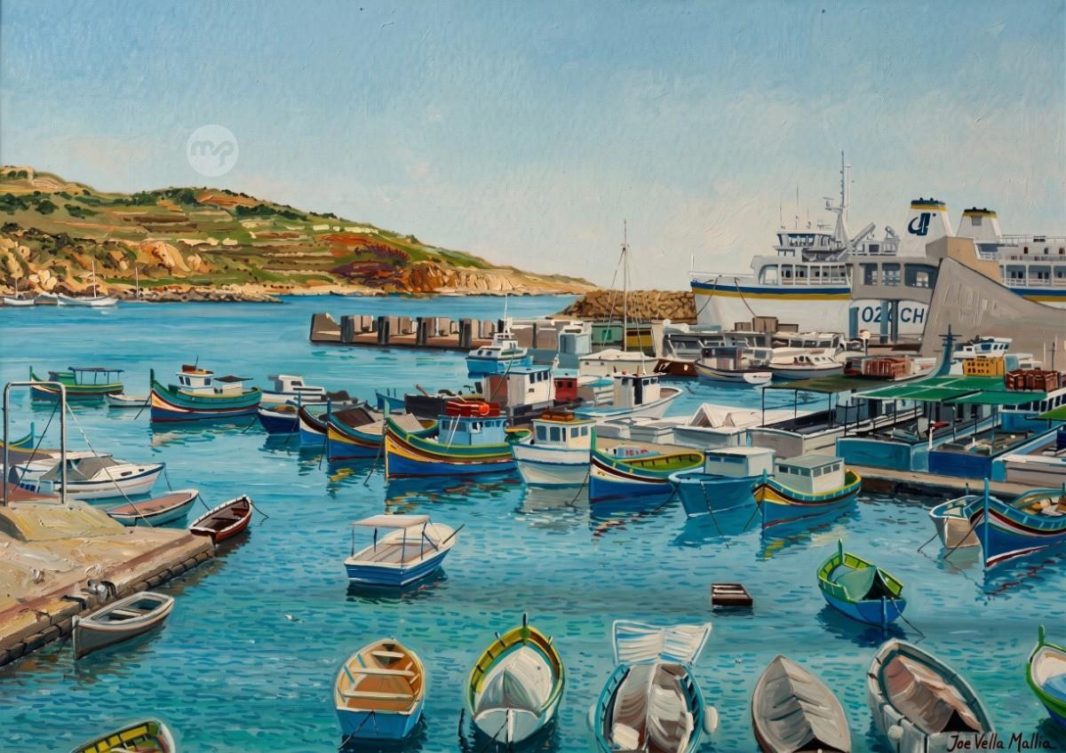 MGARR FERRY GOZO --- ORIGINAL HAND PAINTING OIL ON CANVAS 70X50