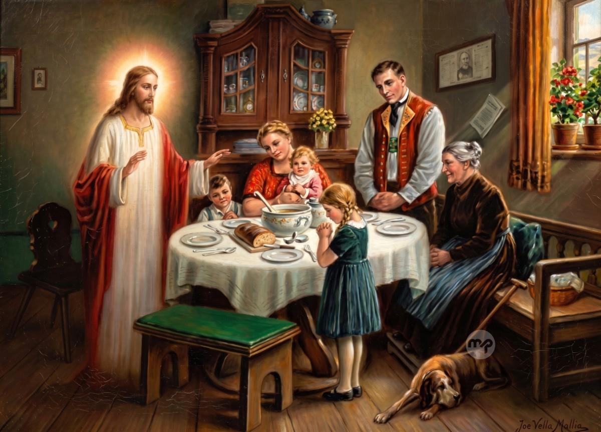 BLESS OUR FOOD --- ORIGINAL HAND PAINTING OIL ON CANVAS 70X50