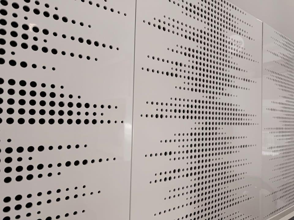 This high performance panel was designed to counteract reflections, concentrating on mid-high frequencies, while its sleek surfaces and perforation also provide selective scattering over high frequencies, combining both effects in this distinct design.