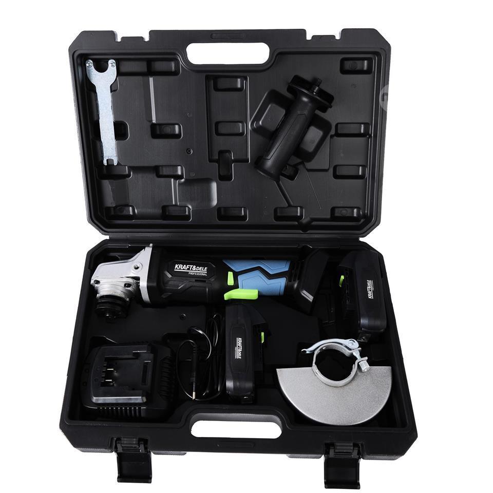 Professional cordless angle grinder by Kraft&Dele model KD3405 . This is an essential set for every DIY enthusiast and professional. The set is designed for cutting, grinding and polishing materials such as wood, concrete, plastics, ceramics, stone and many others.