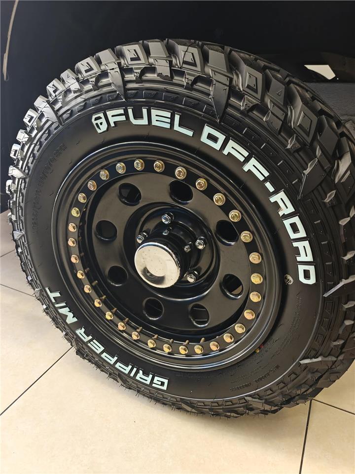 The tyre is a Fuel Off-Road Gripper M/T, size LT235/70R16.