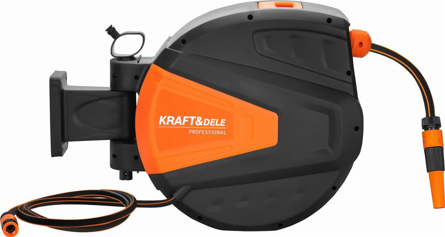 The KD2153 is a functional automatic garden hose reel from KRAFT&DELE, designed for convenient and organized use in the garden. The automatic rewind system allows for quick storage of the hose without tangles or kinks, significantly improving the comfort of daily work.
