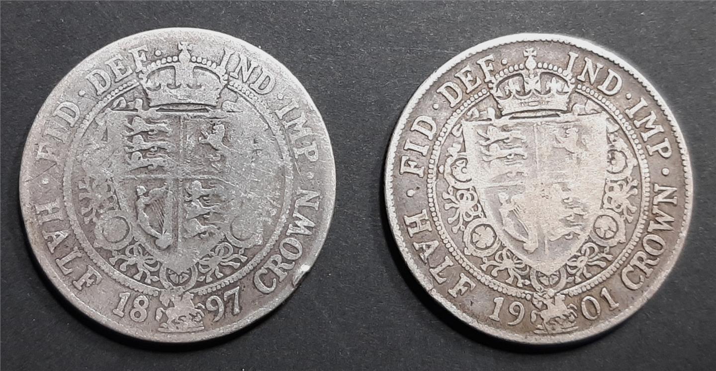 2 QUEEN VICTORIA STERLING SILVER (.925) HALF CROWN COINS dated 1897 and 1901