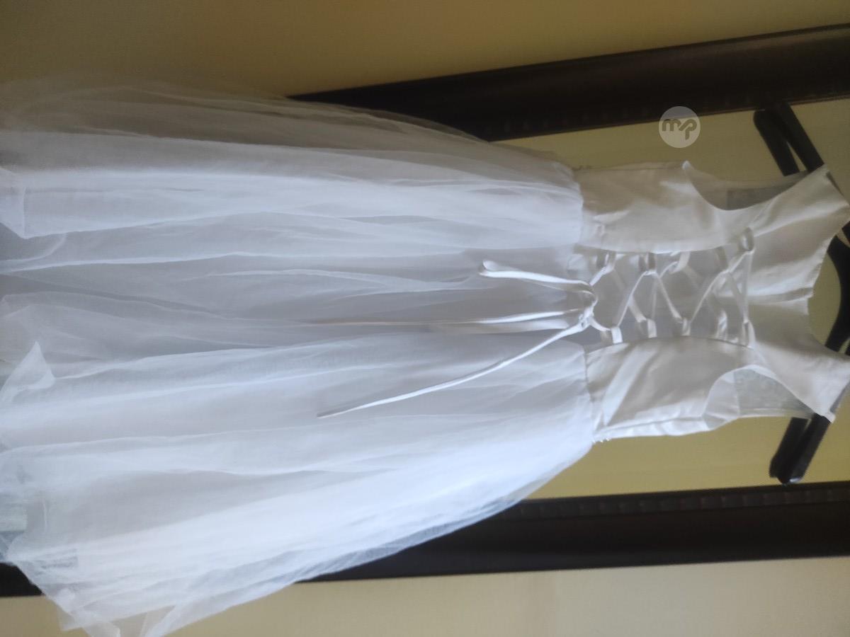 A new Holy Communion dress with tag. Size 8. White with a plain tulle skirt and beading on top. Ideal for petite and short girls. Bought for €80. Price is still on tag