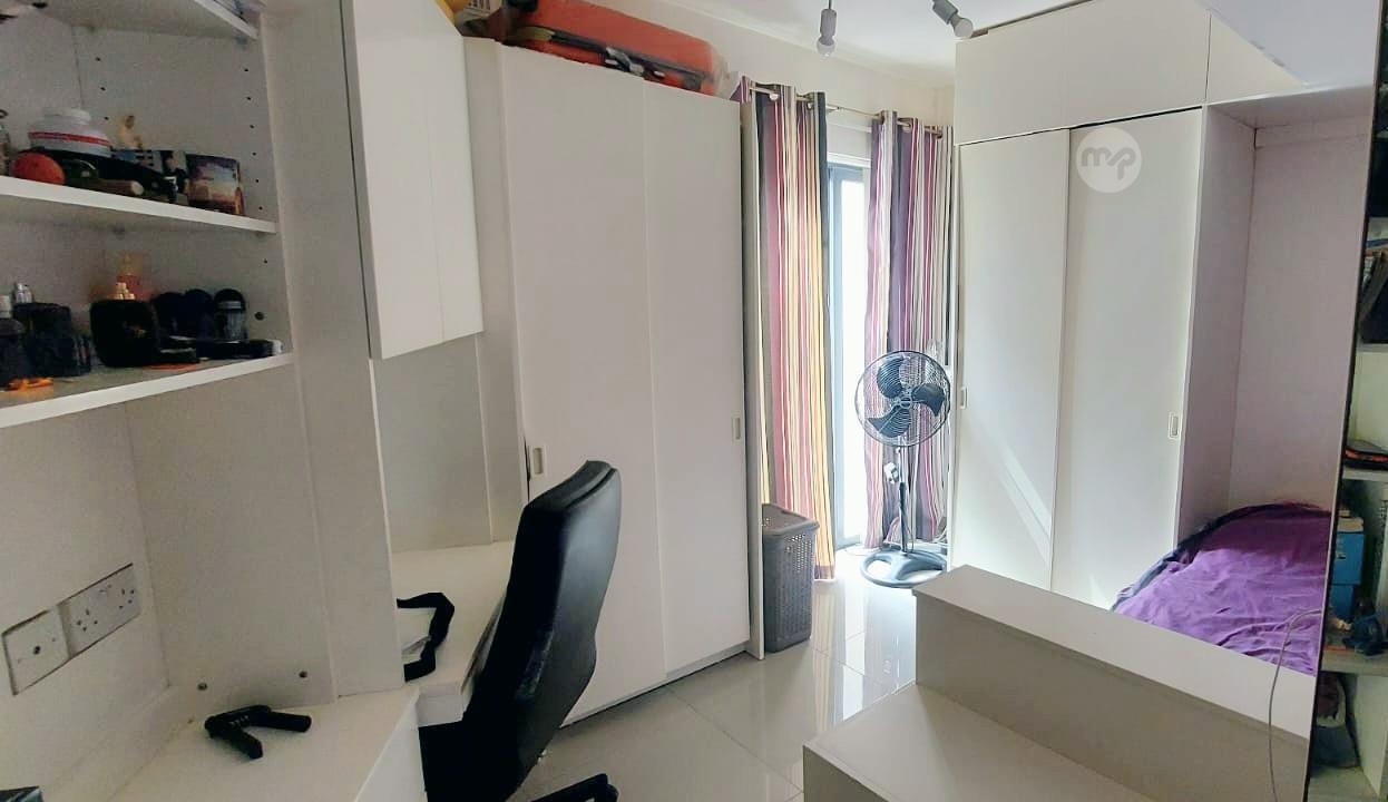- A spare bedroom furnished with custom-made furniture designed to maximise storage and functionality, also enjoying a separate balcony.