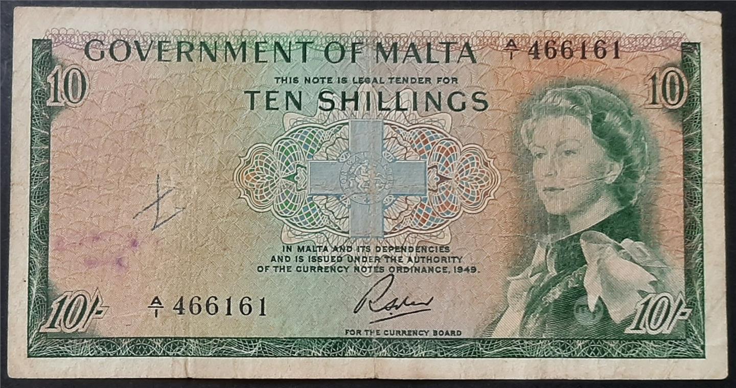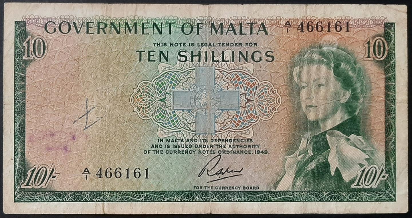 MALTA - GOVERNMENT OF MALTA ELIZABETH II TEN SHILLINGS BANKNOTE signed SOLER (SCARCE)