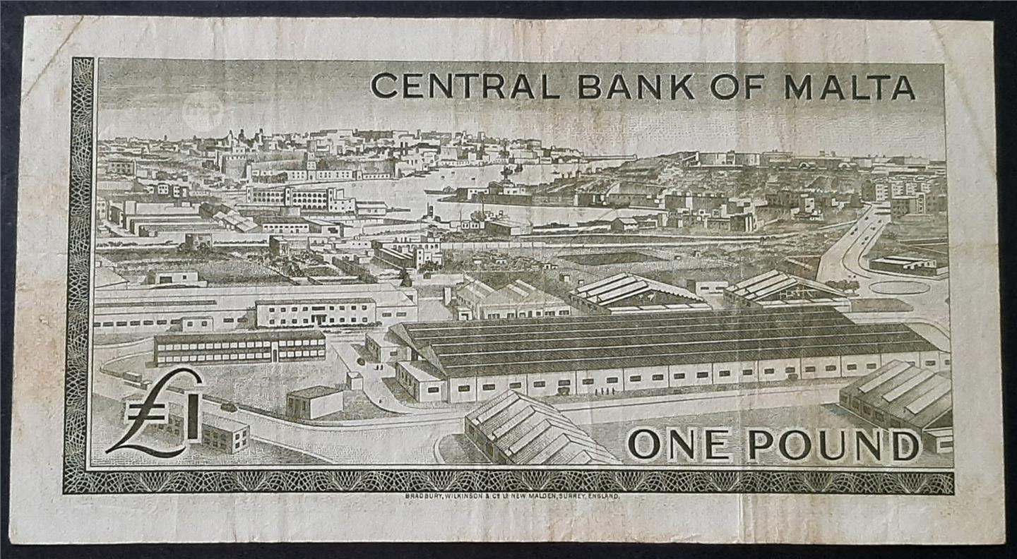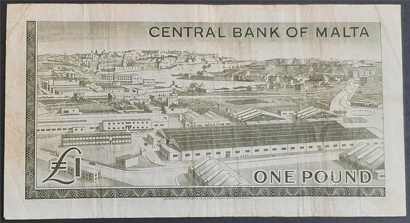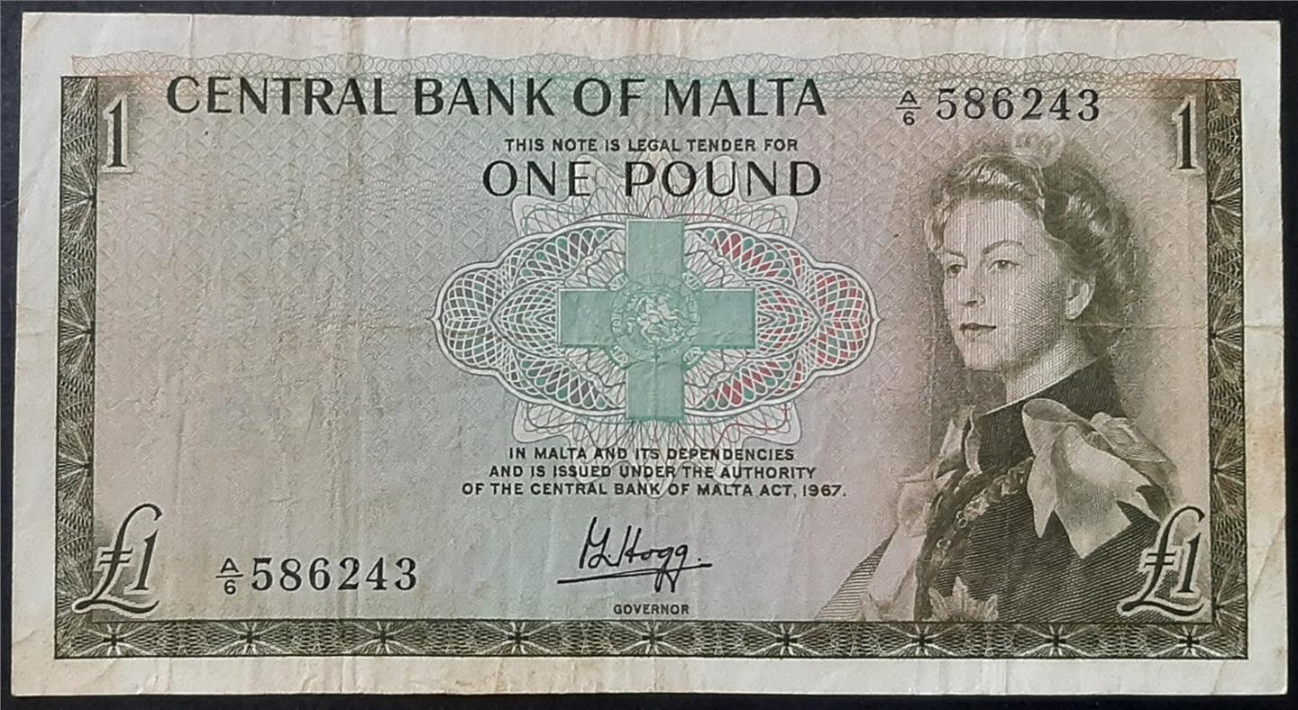 CENTRAL BANK OF MALTA - ELIZABETH II ONE POUND BANKNOTE signed HOGG