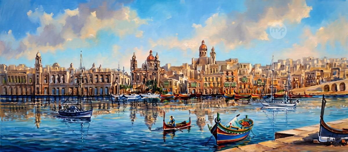VITTORIOSA MALTA ----- ORIGINAL HAND PAINTING OIL ON CANVAS 120X80