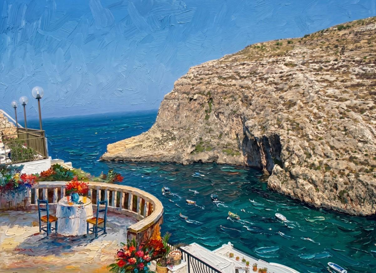 SPOTLIGHT ON XLENDI GOZO --- ORIGINAL HAND PAINTING OIL ON CANVAS 70X50