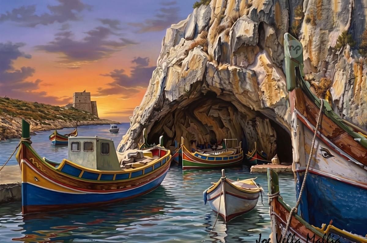 XLENDI FISHING BOATS GOZO --- ORIGINAL HAND PAINTING OIL ON CANVAS 70X50
