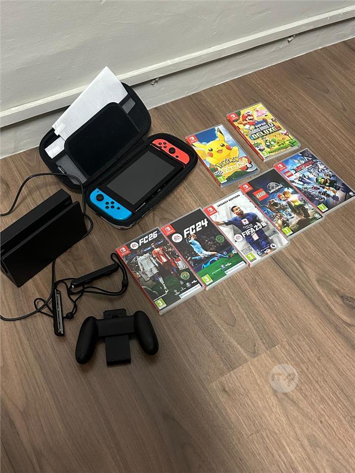 A nintendo switch kept in very good condition which comes with 7 authentic games including the latest FC26. This also comes with a carrying pocket. The games are:
