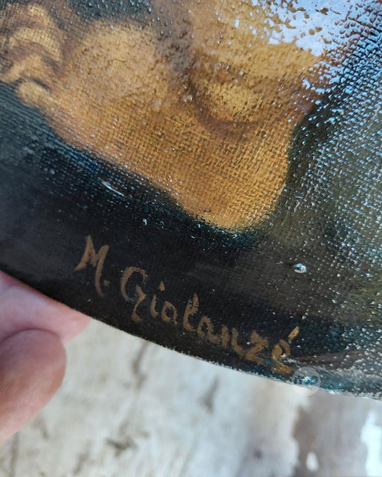 An old oil on canvas painting Showing