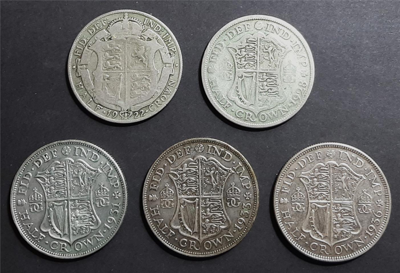 KING GEORGE V SILVER (.500) HALFCROWN COINS