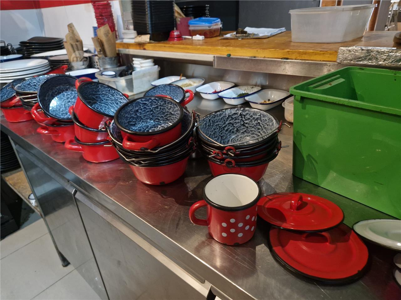 Plates, glasses, pots, etc. are for sale from restaurant. Price on agreement.