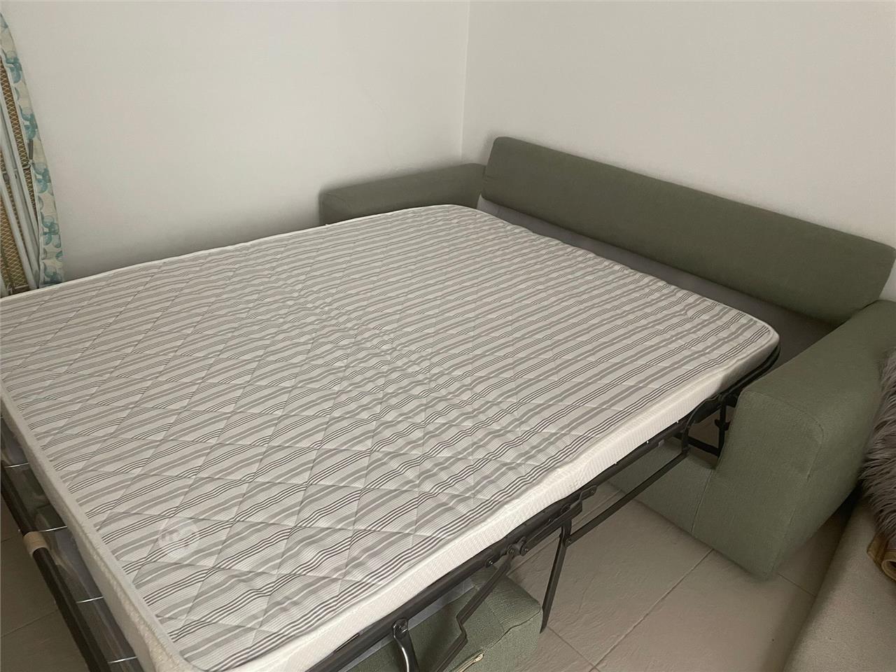 A couch that opens into a bed. 2 people can sleep comfortably. It’s used but in a good condition. Size is 200/85.