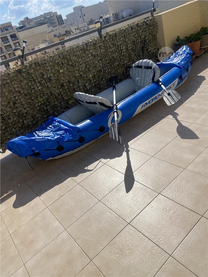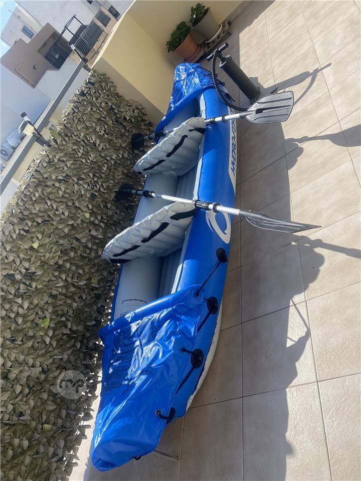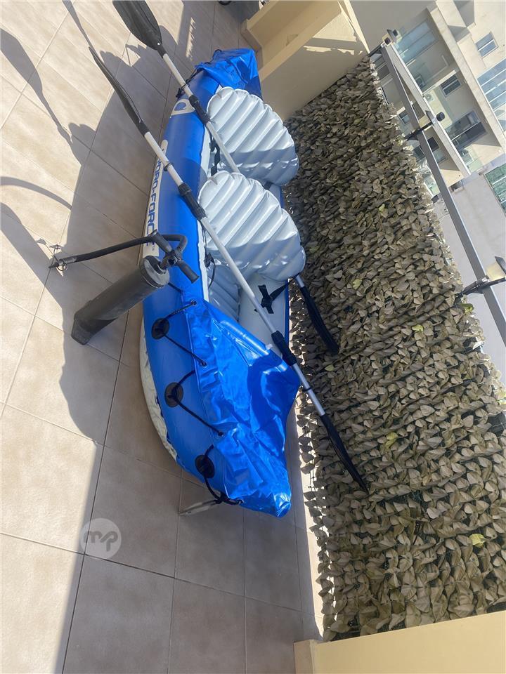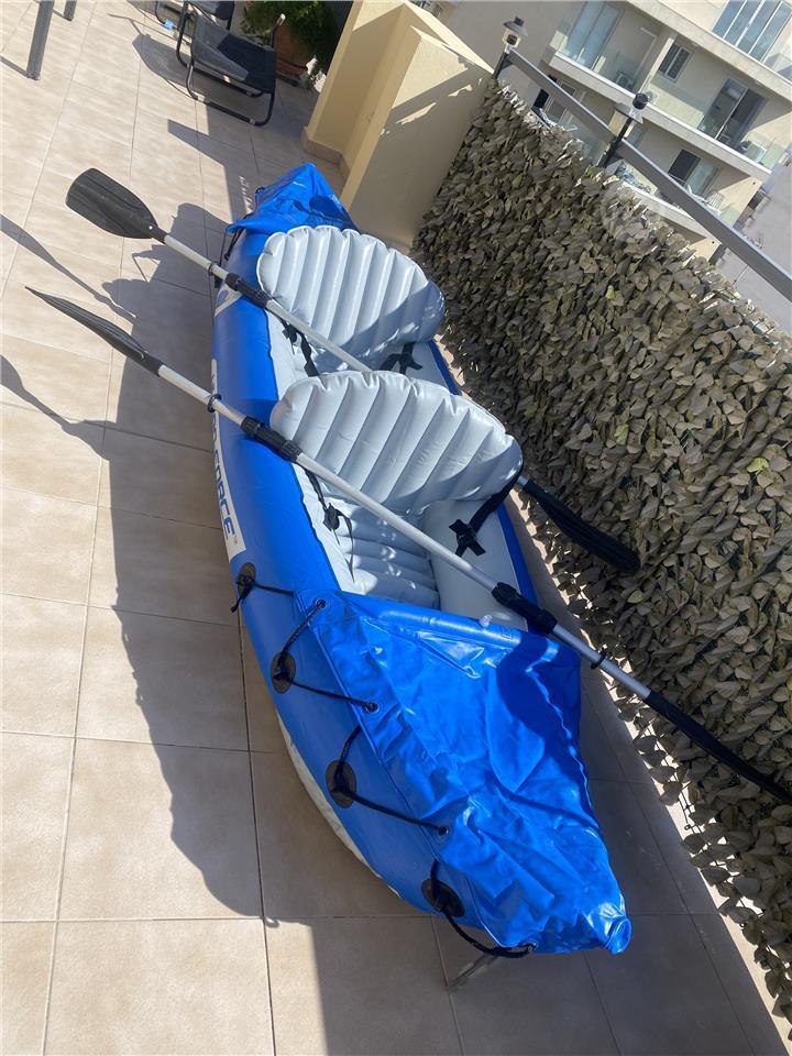 Inflatable 2 man Kayak complete with paddles, pump, & water proof bags, in good condition hardly used,plus 2 life jackets 2 adult & 1 child.