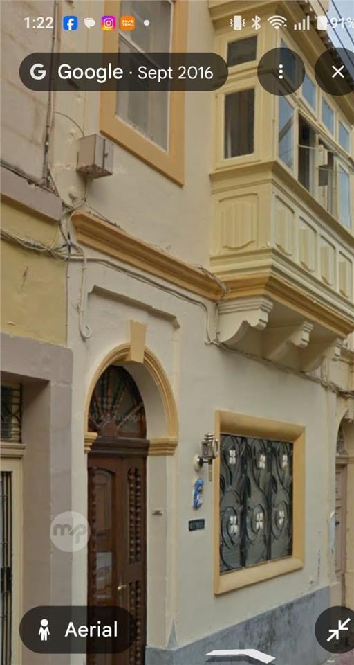 On entering the premises, one finds a hallway with a door-opening on the right leading to Room 1 with a wide window opening on the road. Room 1 is interconnected with Room 2 by means of a very wide arch. A marble staircase opposite the main entrance door and adjacent to Room 2 leads to the first floor and eventually up to the roof level. This staircase is followed by Room 3 at ground floor level. Room 3 has a wide window overlooking the backyard. Room 3 which leads to the WC/Bathroom leads also to Room 4 which then leads to the backyard.