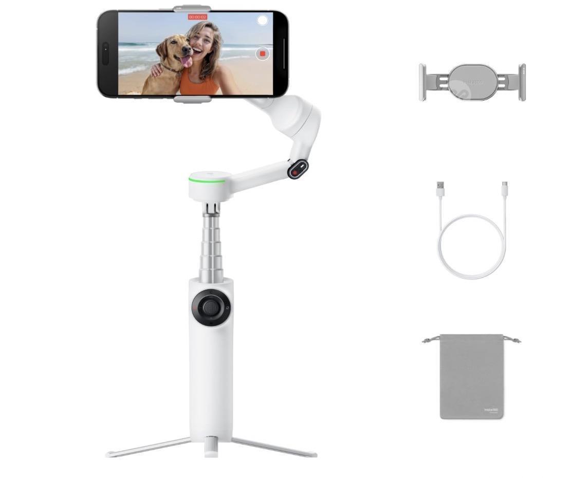 Insta360 Flow 2 Pro White - The Industry First AI Smartphone Gimbal with Apple DockKit, Innovative 360° Pan Tracking, Free Tilt, Tripod/Selfie Stick Built-in, Mobile Vlog / Travel Stabilizer