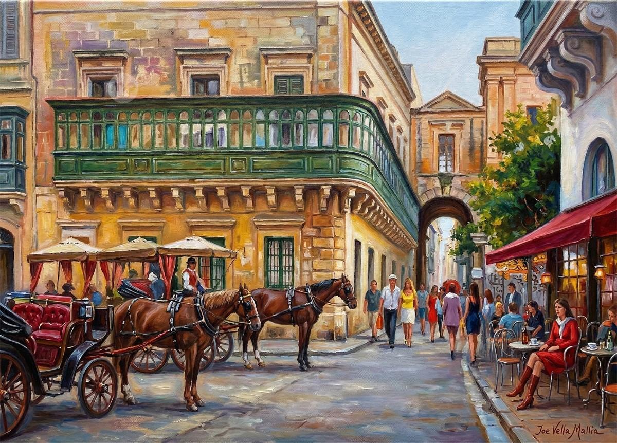 CAFE CORDINA VALLETTA ---- ORIGINAL HAND PAINTING OIL ON CANVAS 70X50