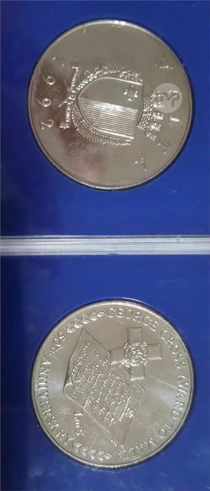 2 1992 MALTA GEORGE CROSS COINS IN PROTECTIVE CASE PERFECT CONDITION