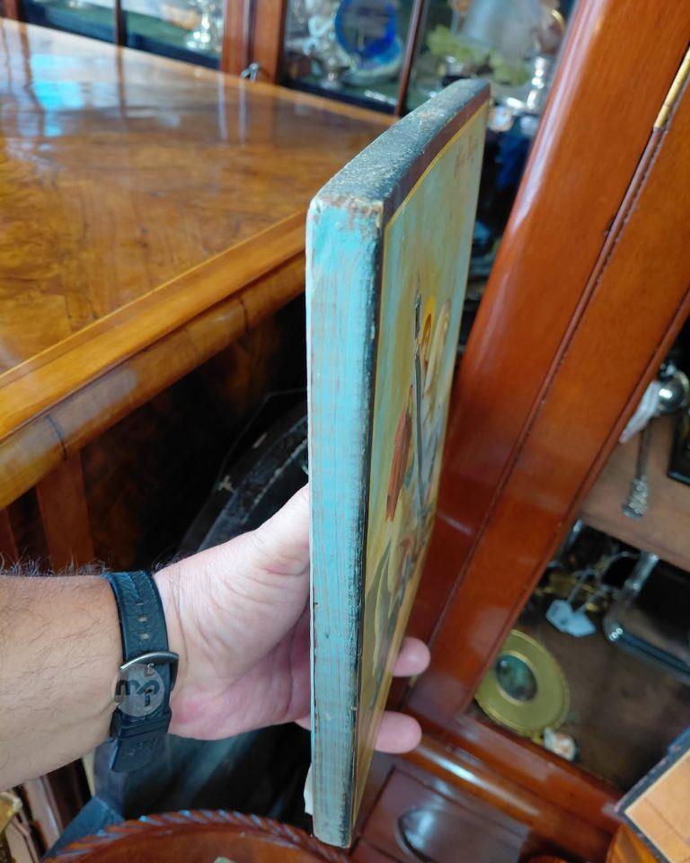An Antique Icon An unusual hand painted icon With Silver sword Showing SAIN