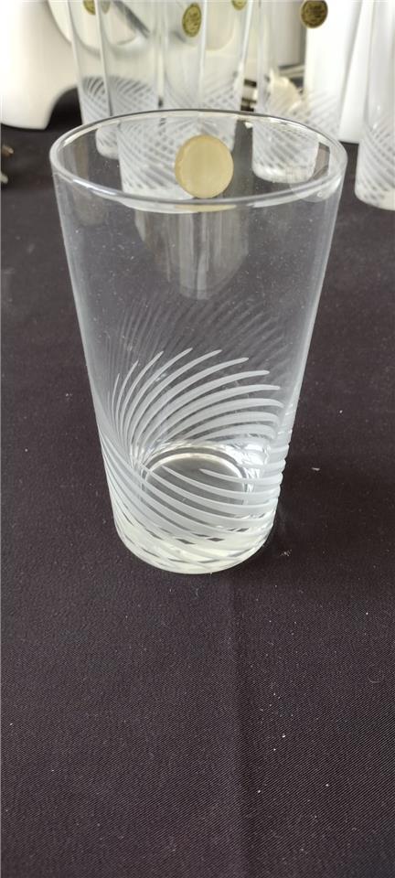 Set of 6 crystal glasses with beautiful etched design. Height 14cm