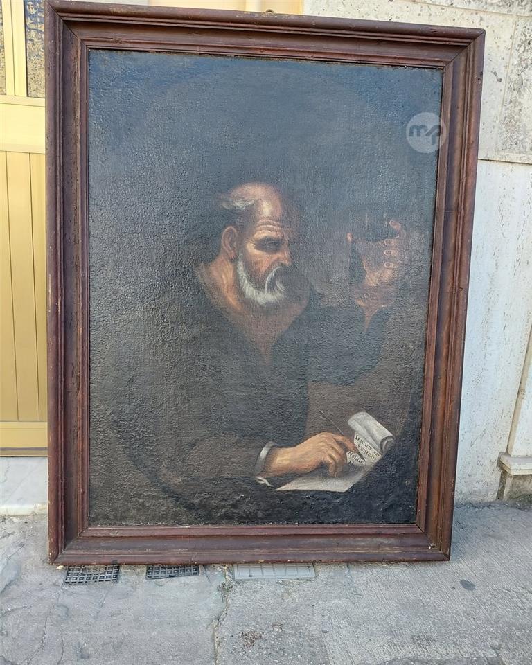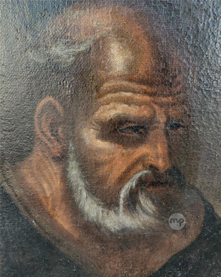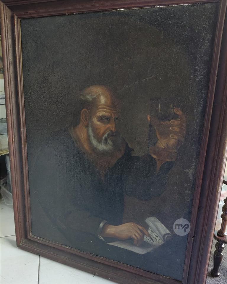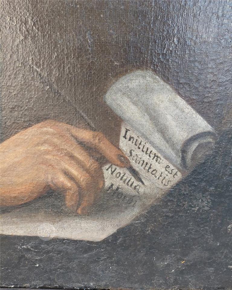 A large early 18th century oil on canvas painting Showing probably medical subject/medical study Mounted on same period carved wood frame Measures 120x90 cm Price of 430 euros 99456526