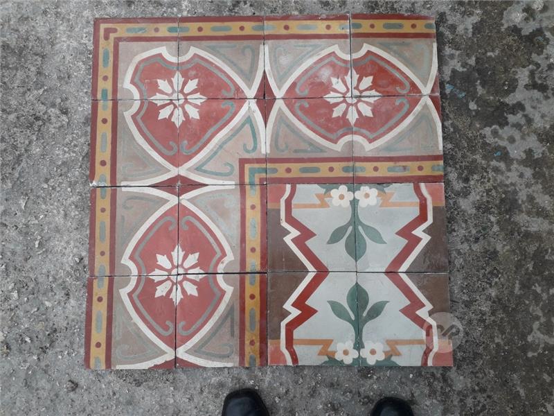 2 sets of antique patterned tiles with about 165 tiles for the brown marbled set and about 240 tiles for the white flower patterned set.Complete with all corners and borders and in very good condition. Perfectly cleaned and ready to apply. Rare patterns.€3 per tile