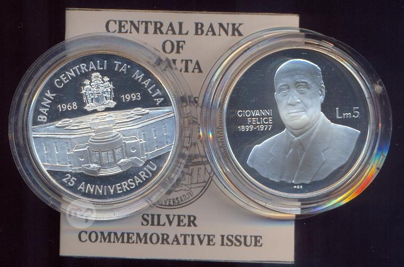 MALTA 1993 HAMES LIRI PROOF TAL FIDDA 25 SENA BANK CENTRALI (WITH BOX AND CERTIFICATE)