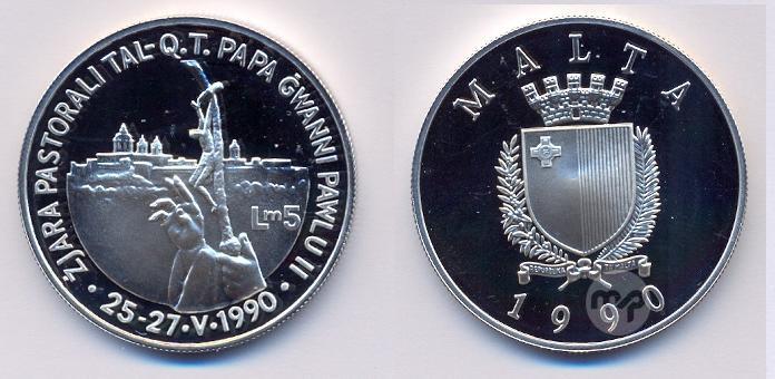 MALTA 1990 HAMES LIRI PROOF TAL FIDDA POPE IN MALTA (WITH BOX AND CERTIFICATE)