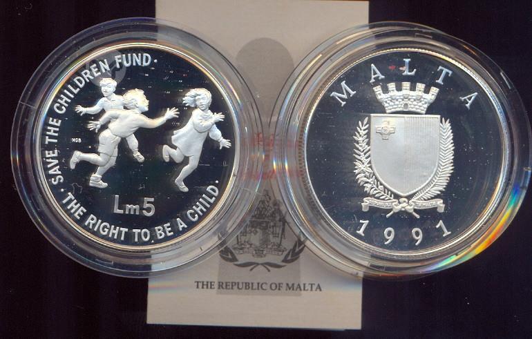 MALTA 1991 HAMES LIRI PROOF TAL FIDDA SAVE THE CHILDREN FUND (WITH BOX AND CERTIFICATE)