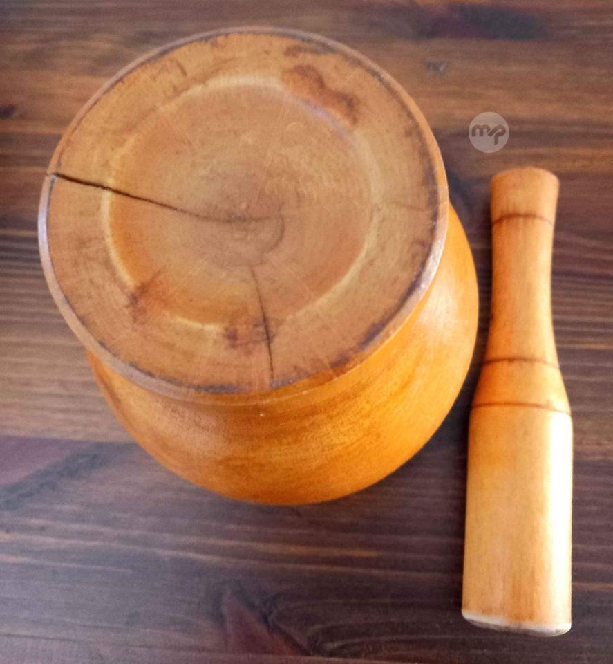VINTAGE WOODEN MORTAR WITH PESTLE - MEHRIEZ