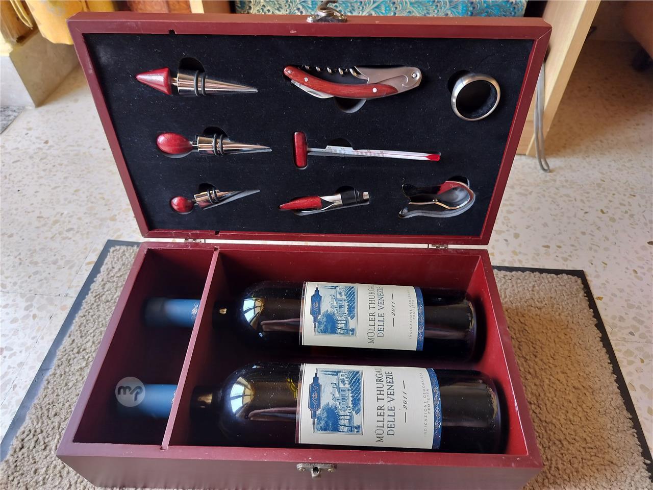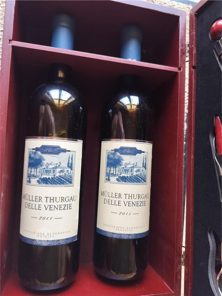 Wine Cherry Wood Box, 2 Bottle 8 Wine Accessory Wine Müller Thurgau delle Venezie 2011