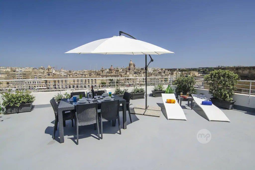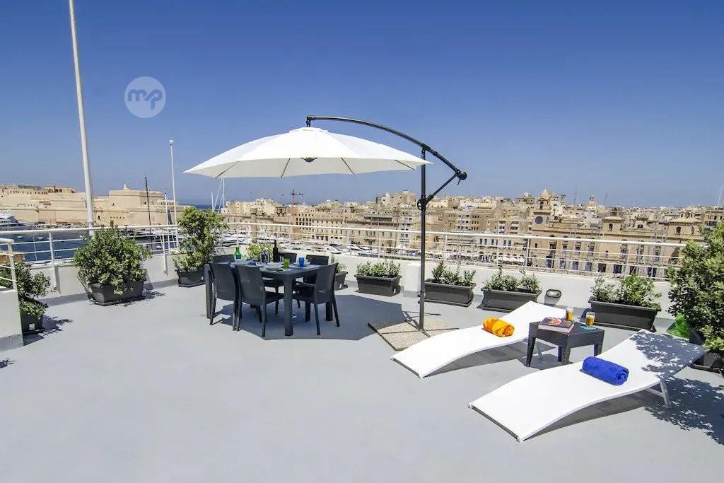 * Gorgeous roof-top terrace with views of the marina and Birgu