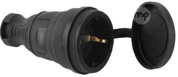 Schuko socket with black rubber cover Vito The RUBBER PLUG series features long life and easy and safe use for devices. Characteristics Brand: Vito EAN code: 8698553610979 Supplier code: 8006460 Black colour Material: rubber IP protection: IP44