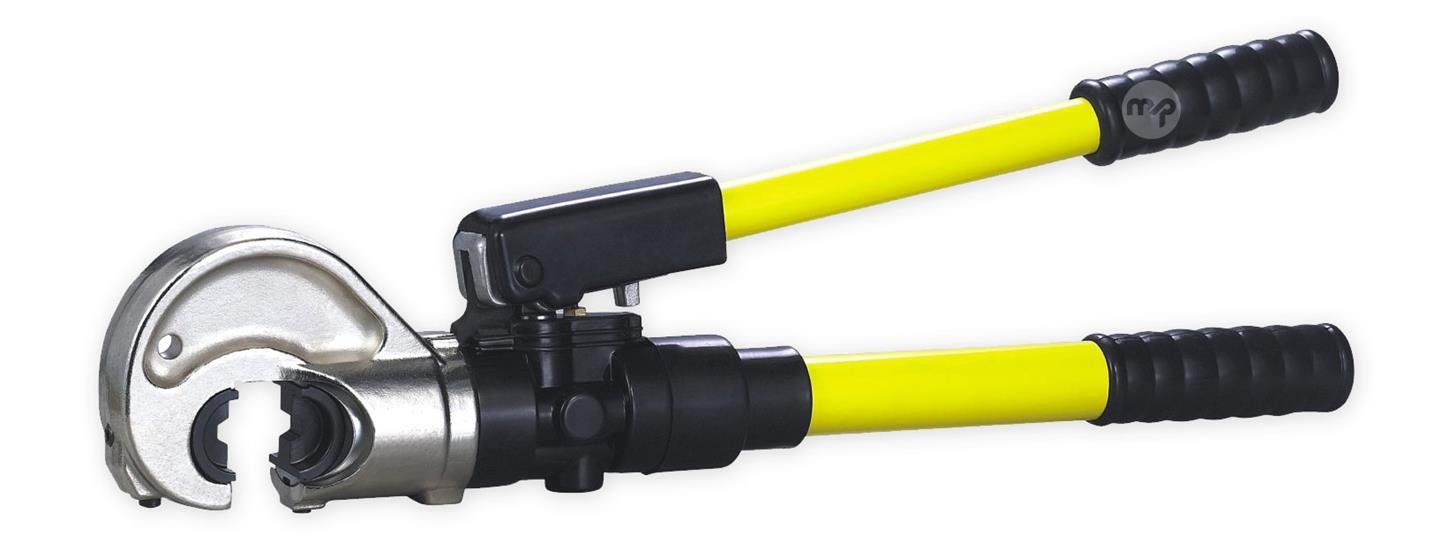 Hydraulic crimping tool - CYO-410 Hydraulic crimper with hexagonal shape, to crimp the following sections: 35, 50,70,95,120,150,185,240,300. Ideal for electrical plant engineering where connections of aluminum or copper lugs are required, robust and easy to transport and with all the punches supplied. Characteristics Model: CYO-410, Al 35-300mm2 Maximum pressure (Tons): 12 Working stroke (mm): 32mm Punch size (mm2): 35, 50, 70, 95, 120, 150,185, 240, 300 Punch shape: Hexagonal Weight (kg): 6.4