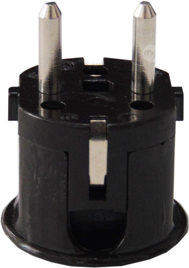 Schuko male plug 2P + E 10-16A 250V Schuko mains plug with double earthing system with 4.8mm diameter plugs. Features Manufacturer code: 538 / M Current: 10-16A Voltage: 250V Poles: 2P + T Plug type: French-German Color: black Pin diameter: 4.8mm