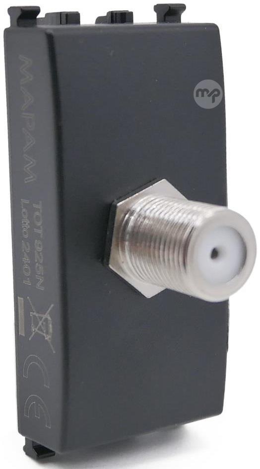Black direct female SAT TV socket compatible with Vimar Arké Characteristics Black colour Connector: SAT female Compatible with the Vimar Arké series EAN code: 0793541340451 Model: 925N