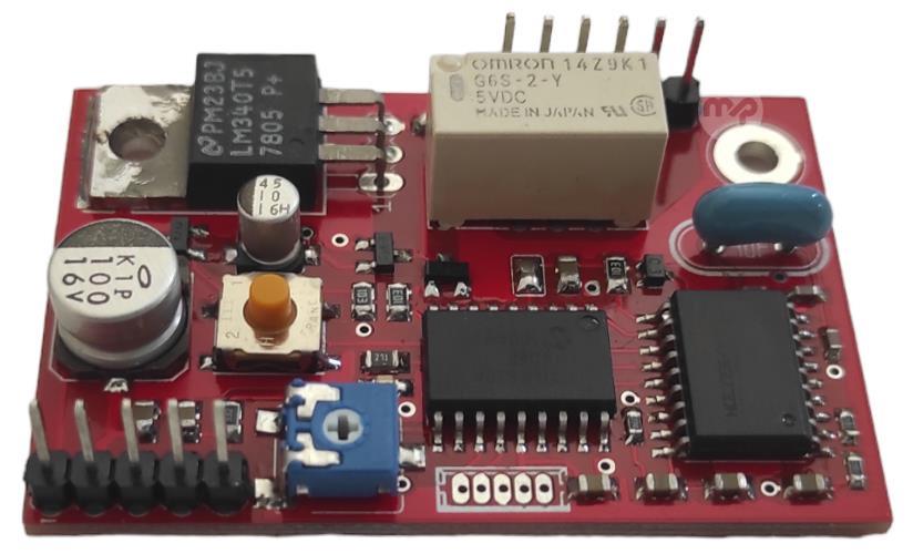 1 channel DTMF key switch This kit lends itself to countless applications where remote control ( bistable or monostable ON / OFF ) of any electric - electronic circuit is required. It can be connected to the BF output of any UHF, VHF, HF receiver or transceiver or to any low frequency line. Characteristics Bistable operation Monostable operation User manual included Dimensions: 52x35mm Vendor Code: 543-0428 It uses an IRL520SPBF transistor Absorbed current with relay at rest: 10mA Current absorbed with relay energized: 30mA Variable voltage from 8V to 13.8V VR1 resistive trimmer